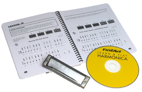 The First Act Learn & Play harmonica method consists of a professional style chrome harmonica in the key of C, 44-page instruction book and play-along CD. Beginners will learn to play chords and melodies to more than 15 songs with a step-by-step approach.