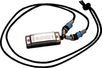 The Hohner Mini Harp with Necklach has 4 holes with 8 genuine brass reeds and plays a full octave! Strung on a heavy, silky black cord with colorful beads and silvertone accents. Made in Germany. The little Hohner harmonica makes a terrific gift..